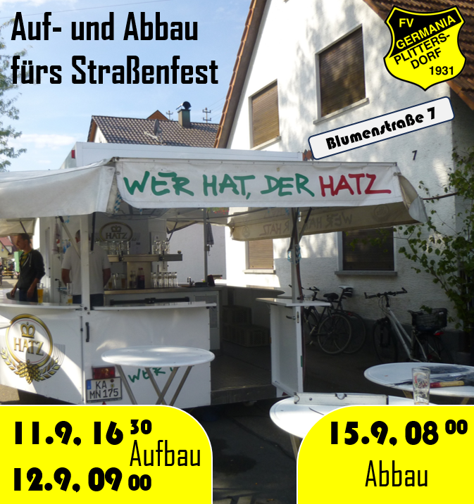 Noch knapp eine Woche muss sich die Ortsbevölkerung und alle Freunde der Plittersdorfer Festkultur gedulden, dann laden die Plittersdorfer Vereine am 13./14.09.2025 – das erste mal seit 2015 wieder – zum Straßenfest in der Blumenstraße ein!